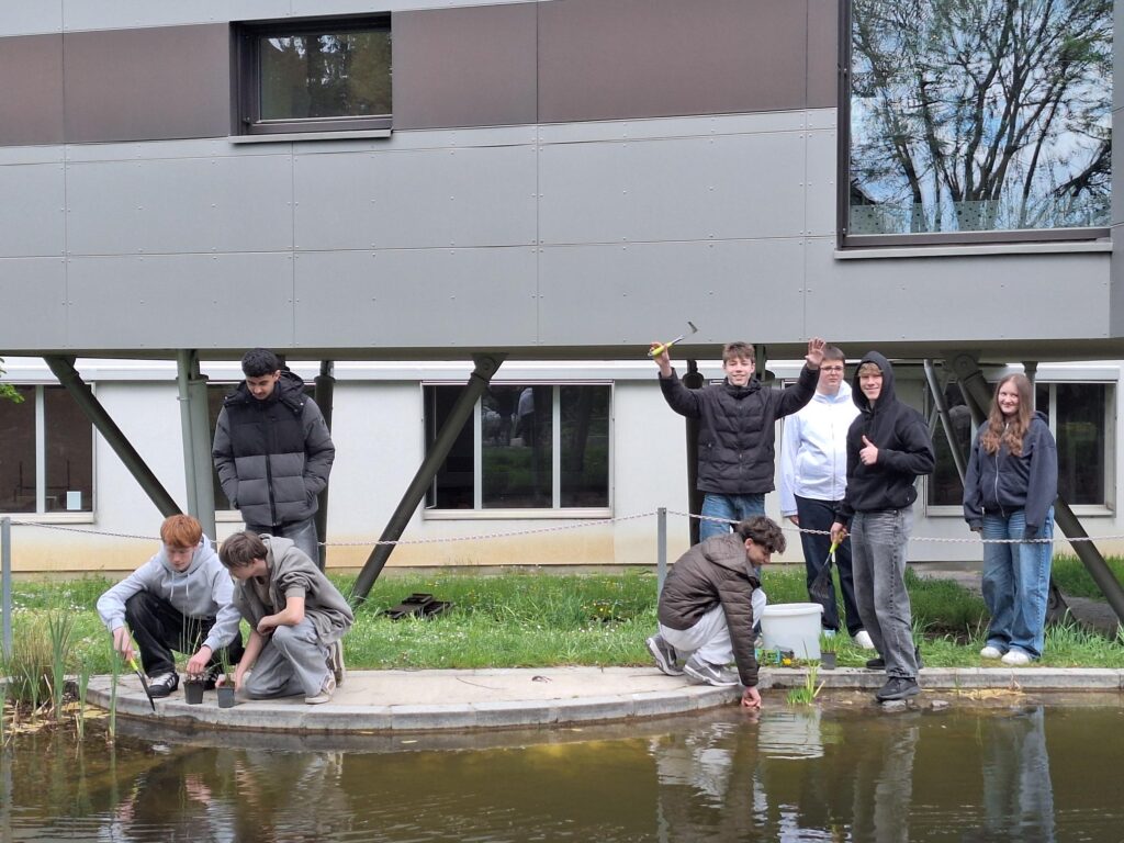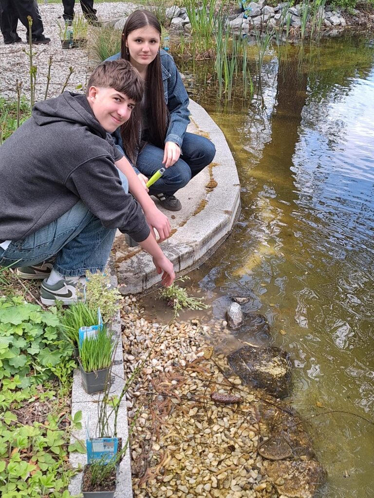 Die Artenvielfalt am Schulteich wurde in den letzten Tagen erfolgreich erweitert. Die 6a Klasse hat mit großem Engagement neue Pflanzen in der Ufer- und Röhrichtzone eingesetzt. Ausgestattet mit Gummistiefeln arbeiteten die Schülerinnen und Schüler tatkräftig im und am Wasser und zeigten dabei viel Motivation und Teamgeist.